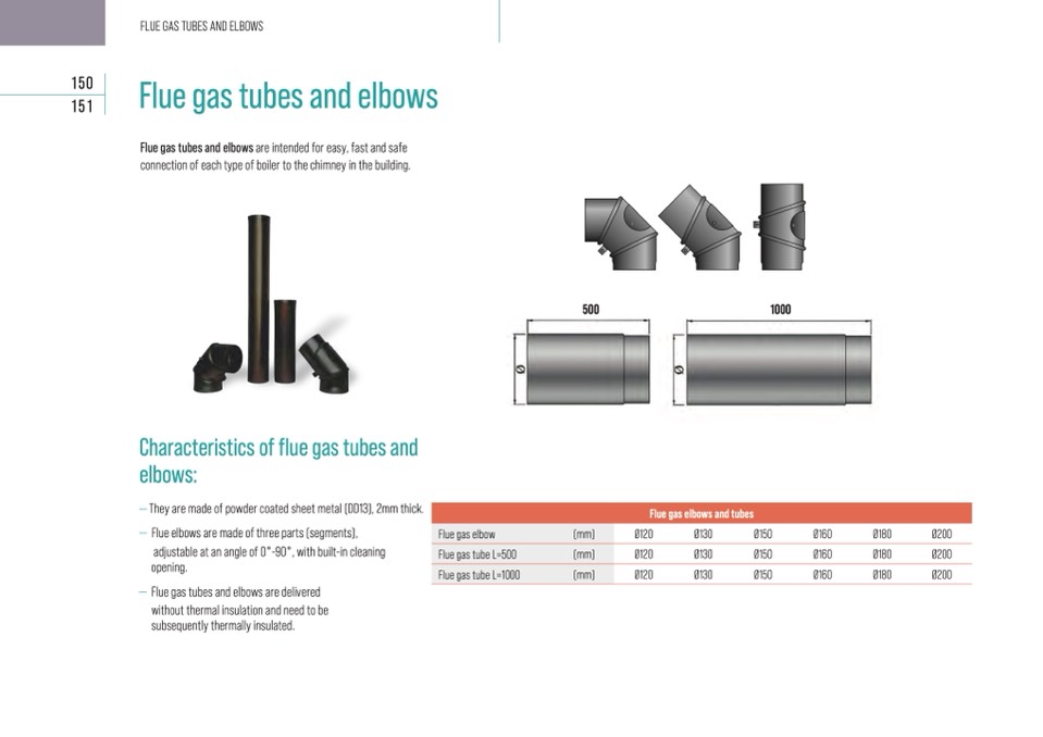 Flue gas tubes and elbows are intended for easy, fast and safe