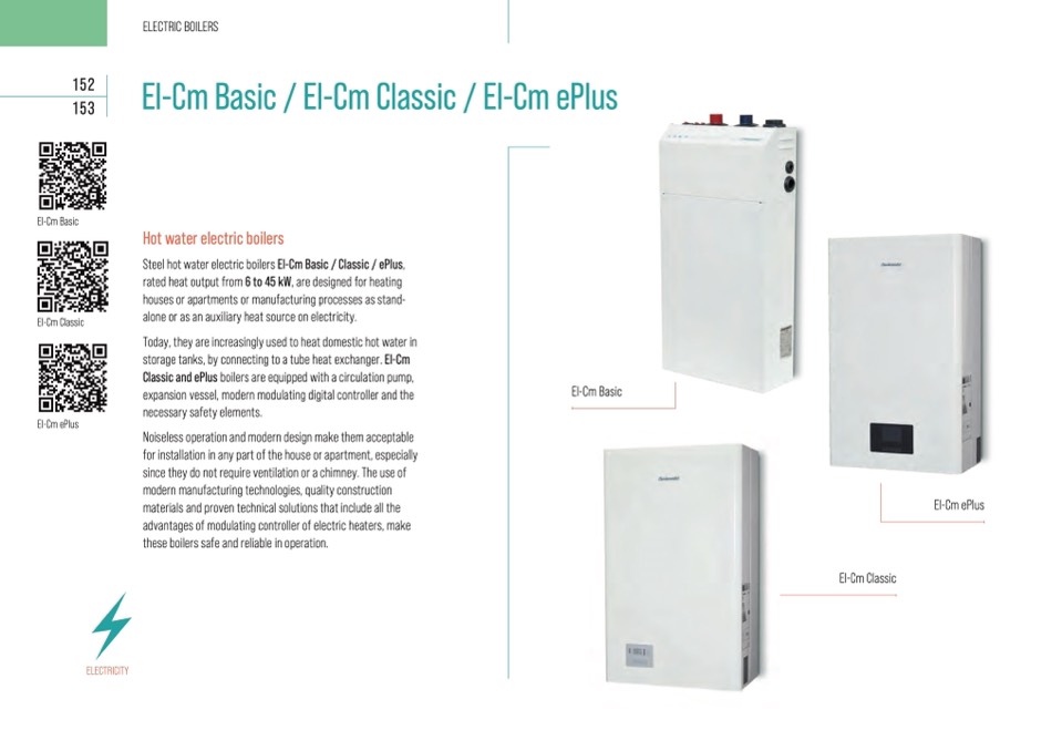 Steel hot water electric boilers El-Cm Basic / Classic / ePlus,
