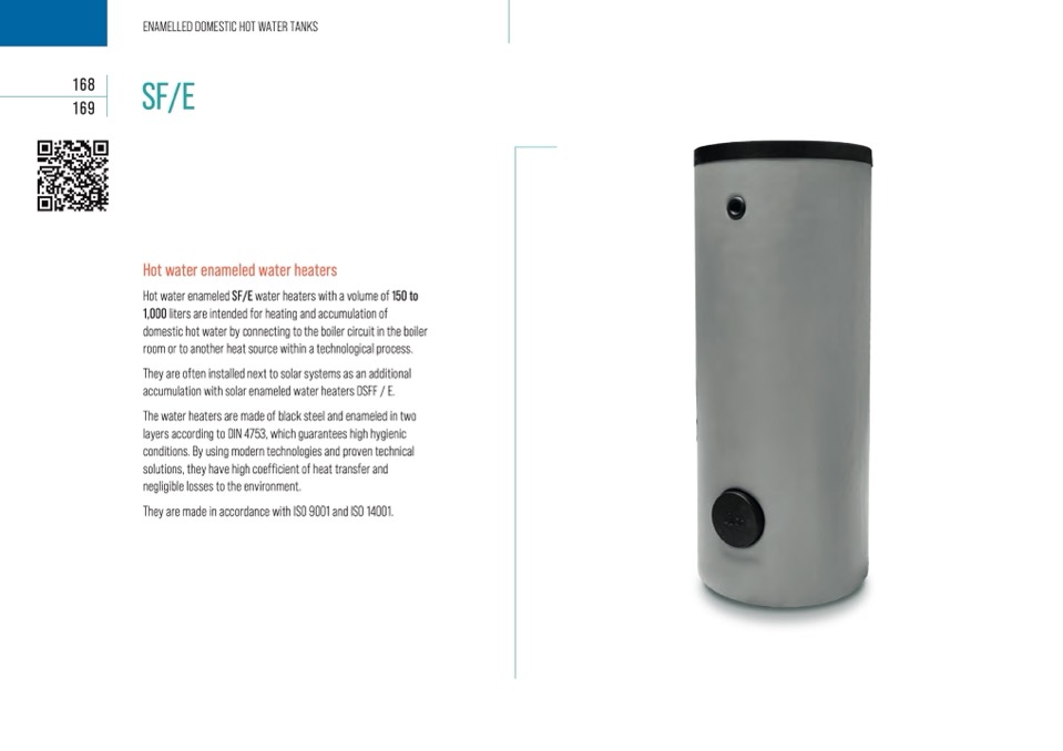 Hot water enameled SF/E water heaters with a volume of 150 to