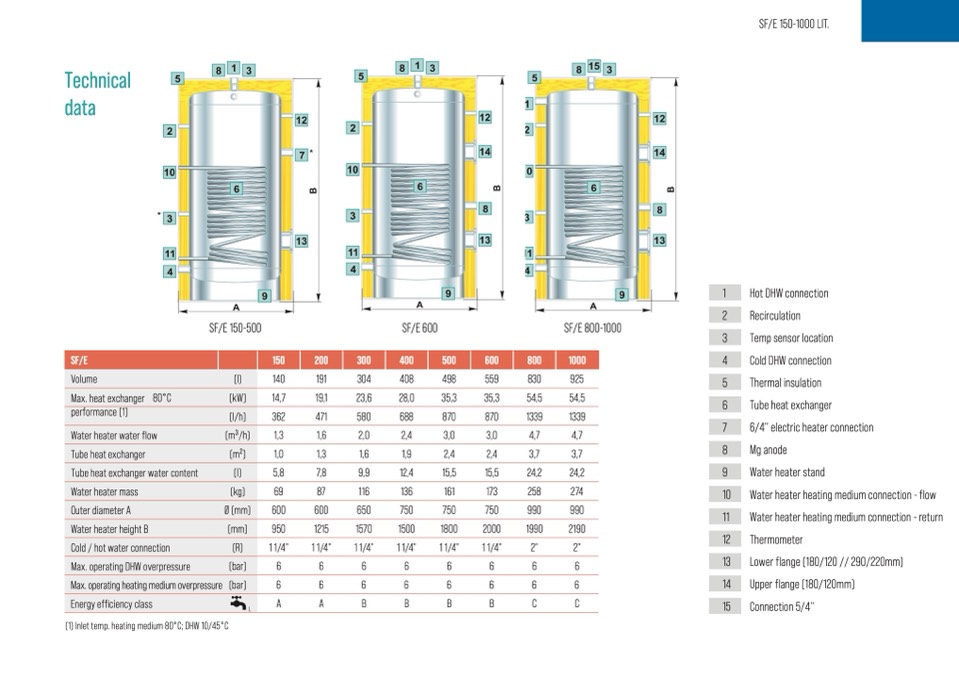 (1) Inlet temp. heating medium 80°C; DHW 10/45°C
