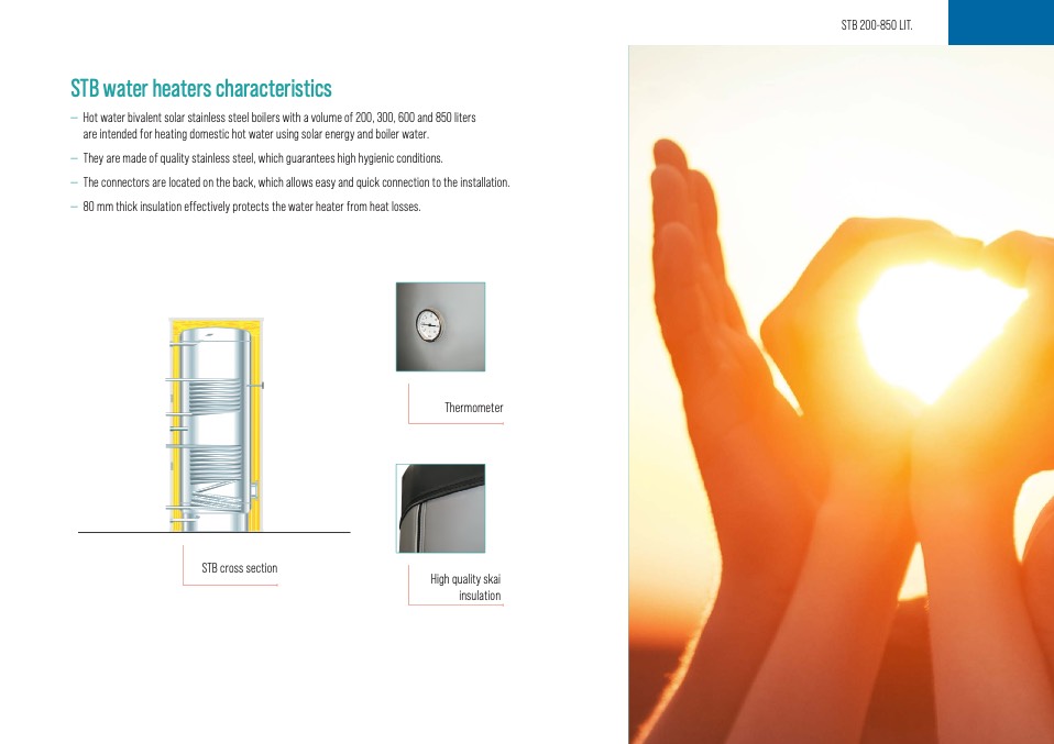— Hot water bivalent solar stainless steel boilers with a volume of 200, 300, 600 and 850 liters
