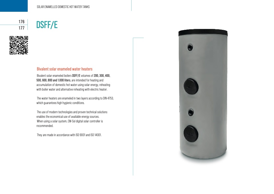 Bivalent solar enameled boilers DSFF/E volumes of 200, 300, 400,