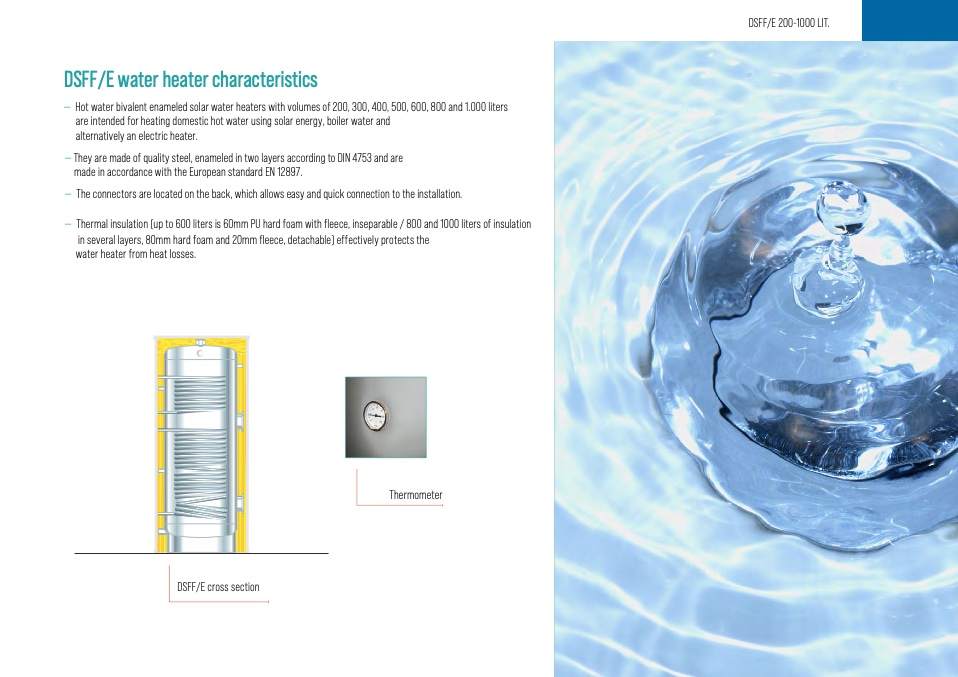 — Hot water bivalent enameled solar water heaters with volumes of 200, 300, 400, 500, 600, 800 and 1.000 liters