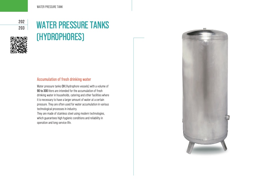 Water pressure tanks CH (Hydrophore vessels) with a volume of