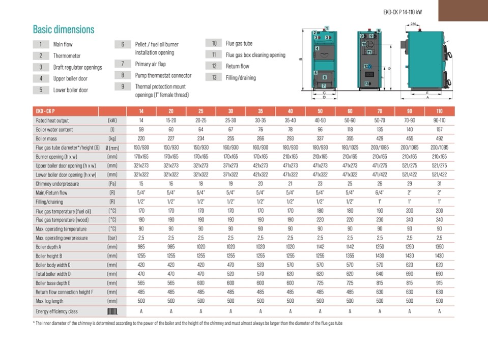 * The inner diameter of the chimney is determined according to the power of the boiler and the height of the chimney and must almost always be larger than the diameter of the flue gas tube