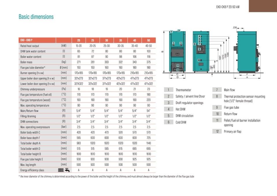* the inner diameter of the chimney is determined according to the power of the boiler and the height of the chimney and must almost always be larger than the diameter of the flue gas tube
