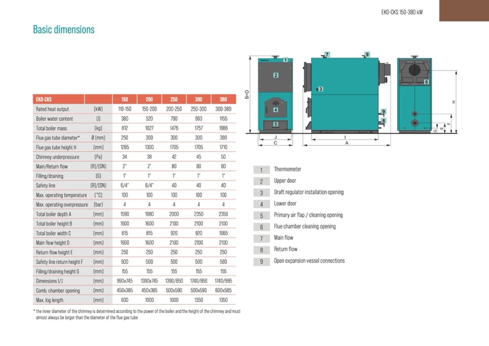 * the inner diameter of the chimney is determined according to the power of the boiler and the height of the chimney and must