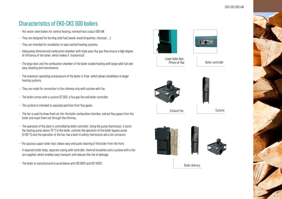 — The boiler comes with a cyclone CC 500, a flue gas fan and boiler controller.