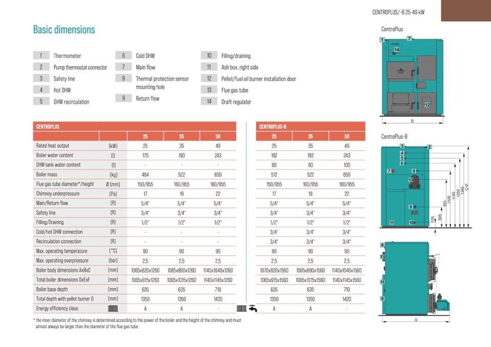 Total boiler dimensions DxExF