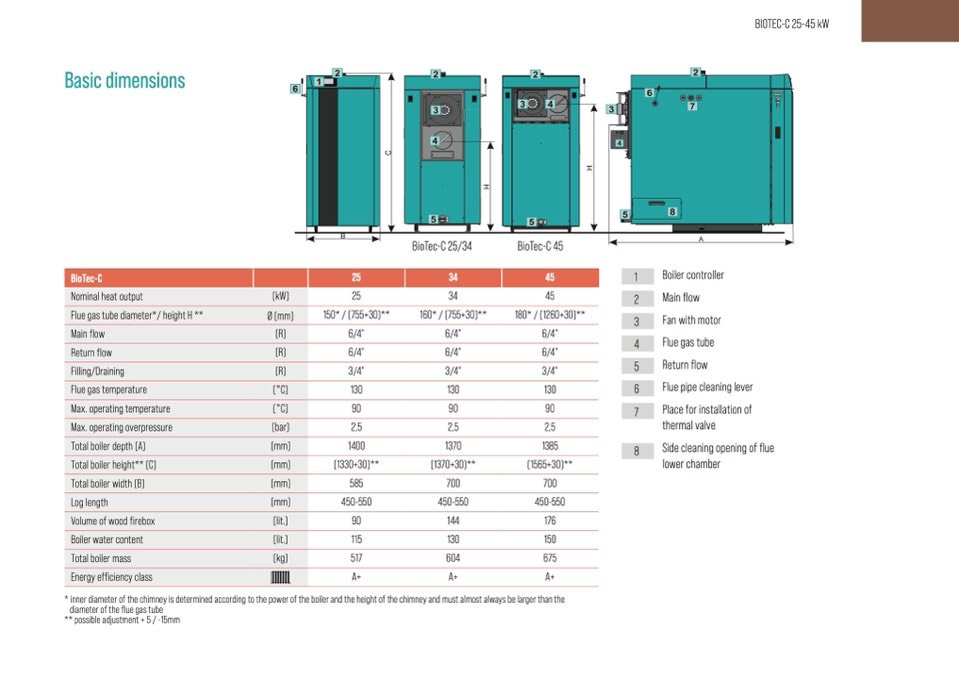 * inner diameter of the chimney is determined according to the power of the boiler and the height of the chimney and must almost always be larger than the