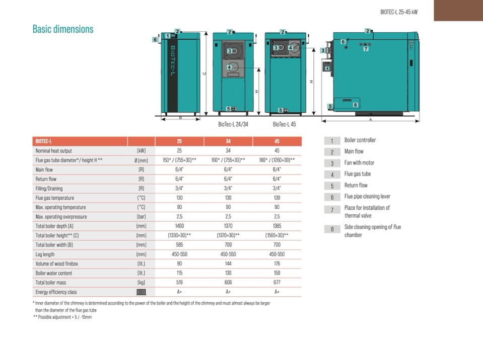 * Inner diameter of the chimney is determined according to the power of the boiler and the height of the chimney and must almost always be larger