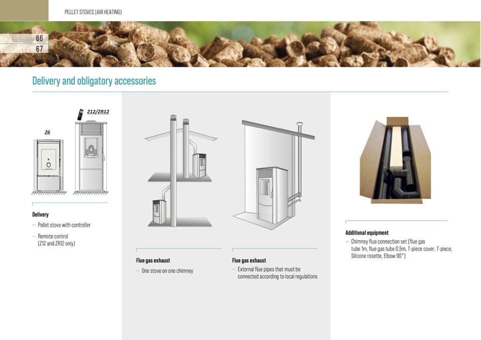 tube 1m, flue gas tube 0,5m, T-piece cover, T-piece,
