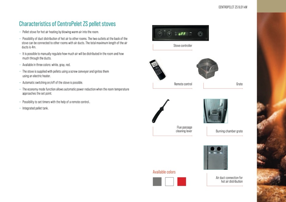 Characteristics of CentroPelet ZS pellet stoves
