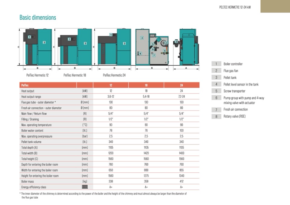 * The inner diameter of the chimney is determined according to the power of the boiler and the height of the chimney and must almost always be larger than the diameter of