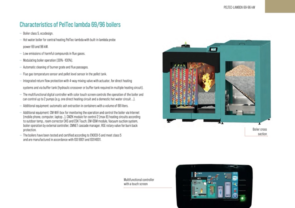 Characteristics of PelTec lambda 69/96 boilers