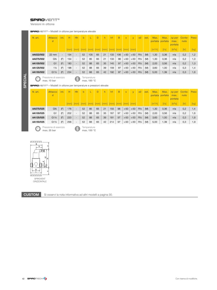 – Modelli in ottone per temperature e pressioni elevate