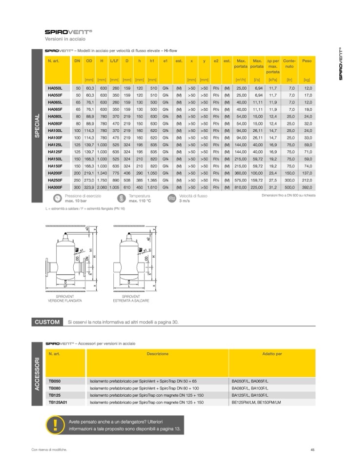 – Modelli in acciaio per velocità di flusso elevate – Hi-flow