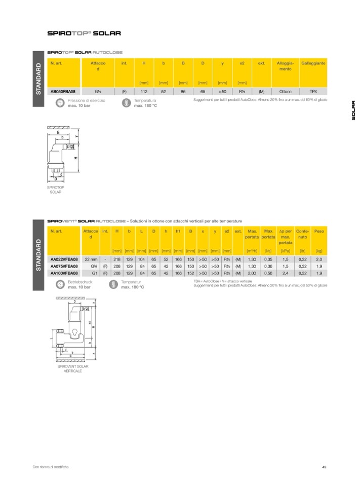 SOLAR AUTOCLOSE – Soluzioni in ottone con attacchi verticali per alte temperature