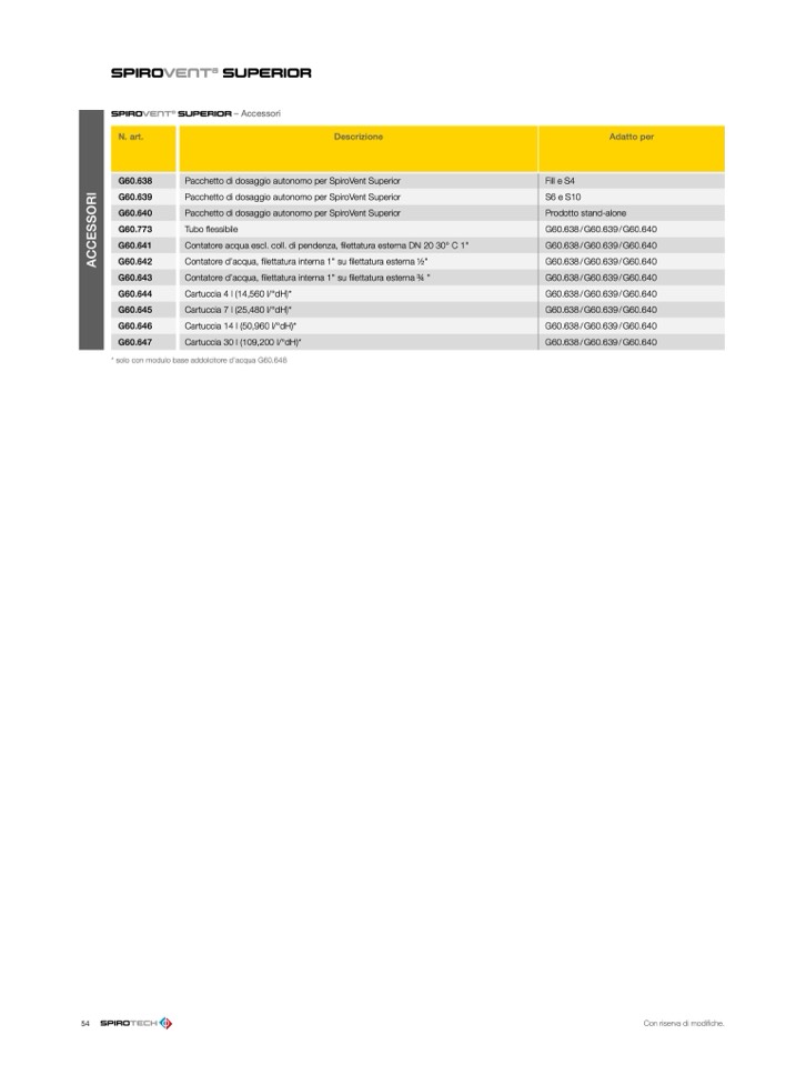 * solo con modulo base addolcitore d’acqua G60.648