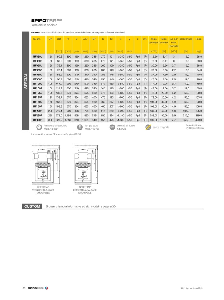 L = estremità a saldare / F = versione flangiata (PN 16)