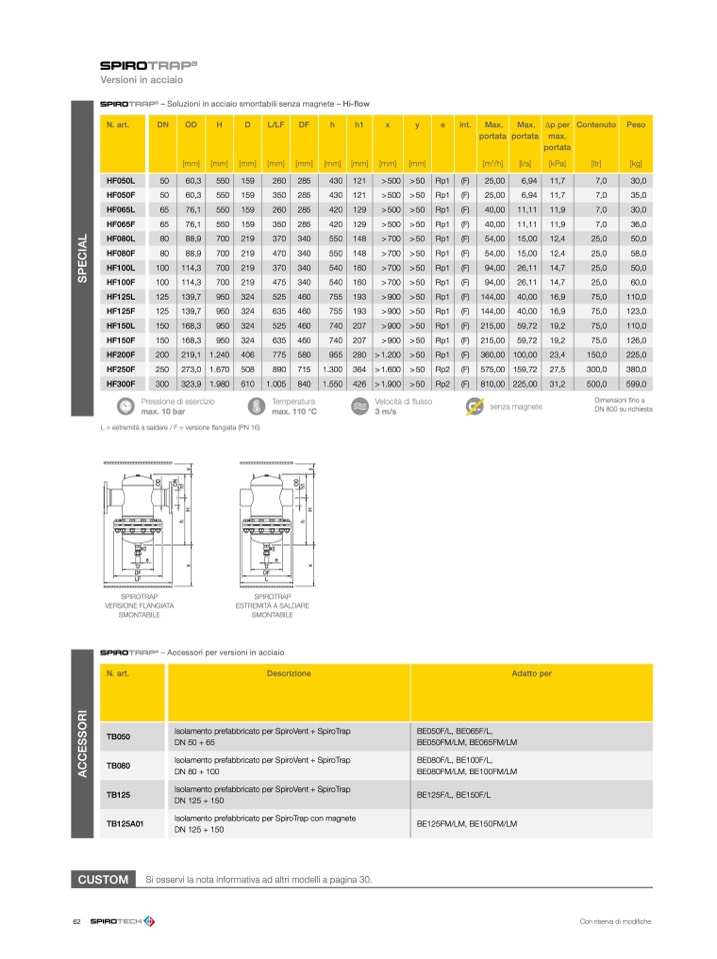 – Soluzioni in acciaio smontabili senza magnete – Hi-flow