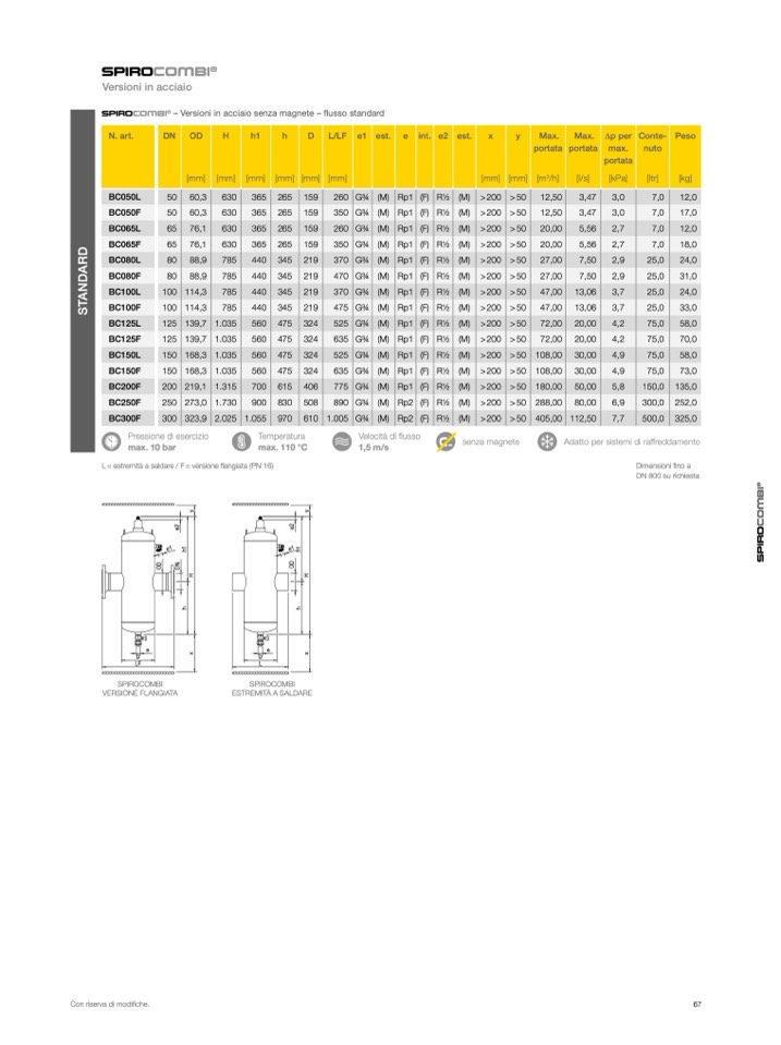 L = estremità a saldare / F = versione flangiata (PN 16)
