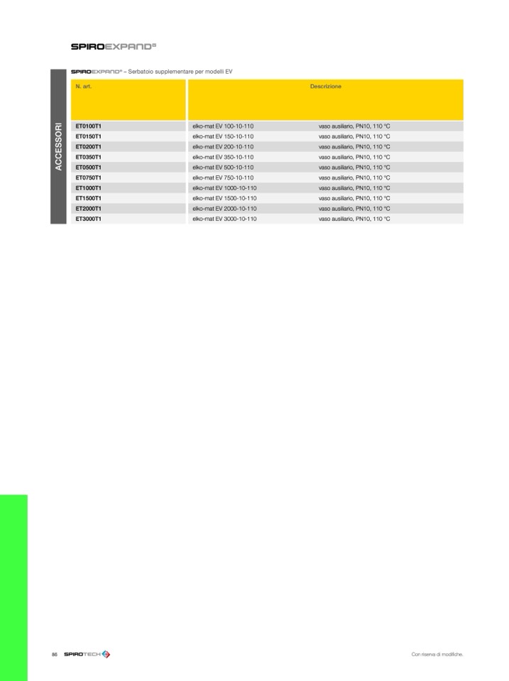 – Serbatoio supplementare per modelli EV