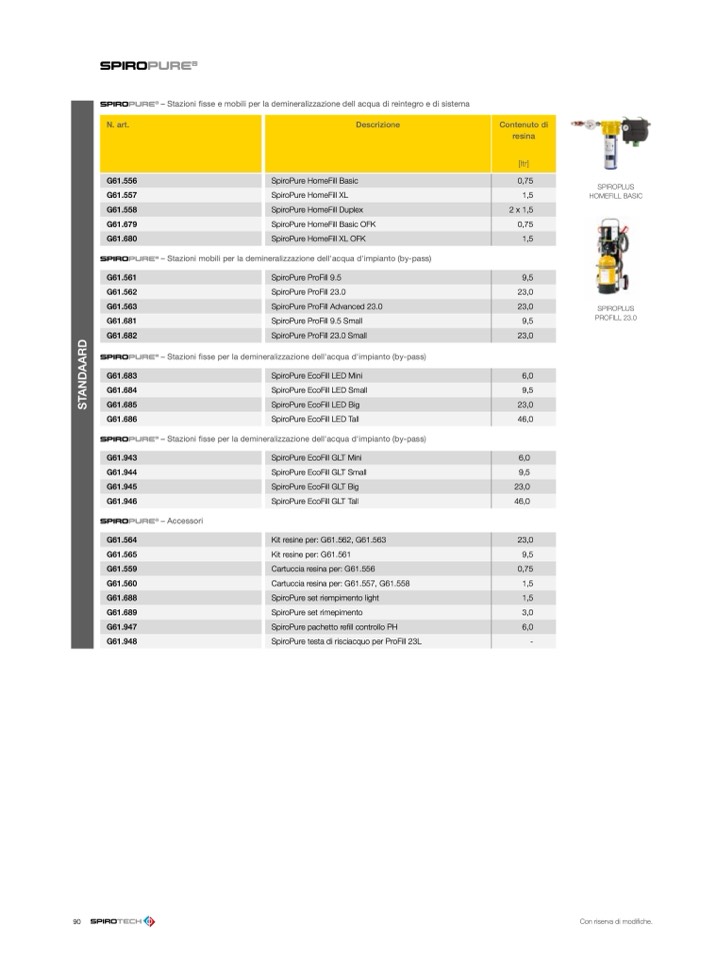 – Stazioni fisse per la demineralizzazione dell'acqua d'impianto (bypass)