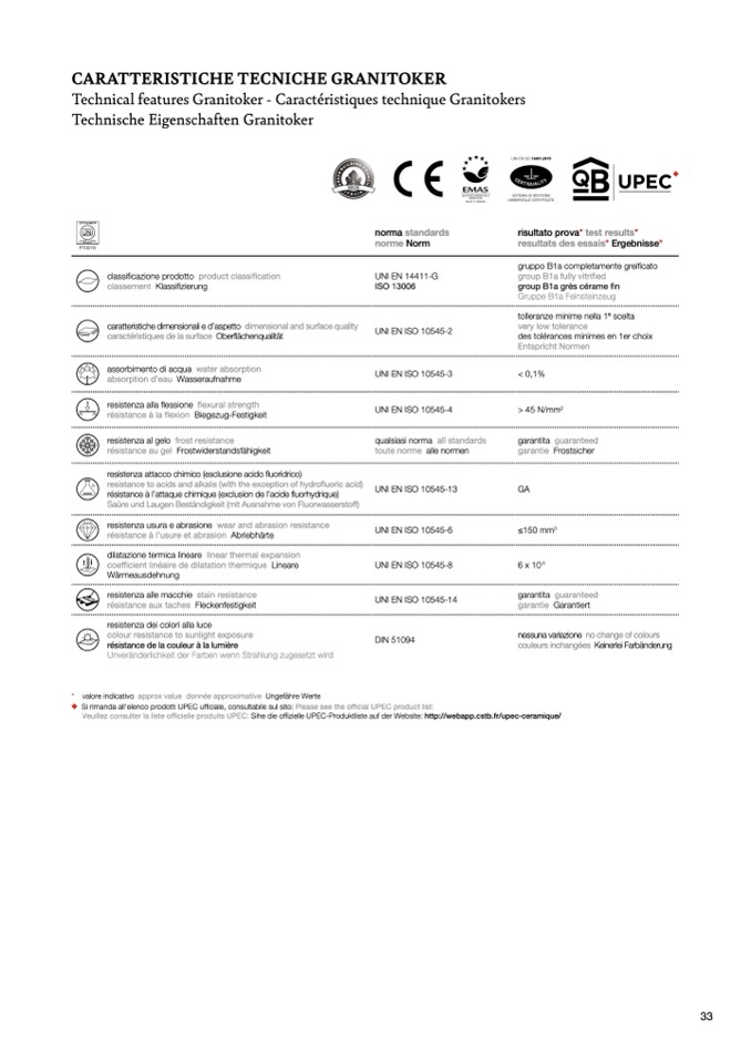Veuillez consulter la liste officielle produits UPEC: Sihe die offizielle UPEC-Produktliste auf der Website: http://webapp.cstb.fr/upec-ceramique/