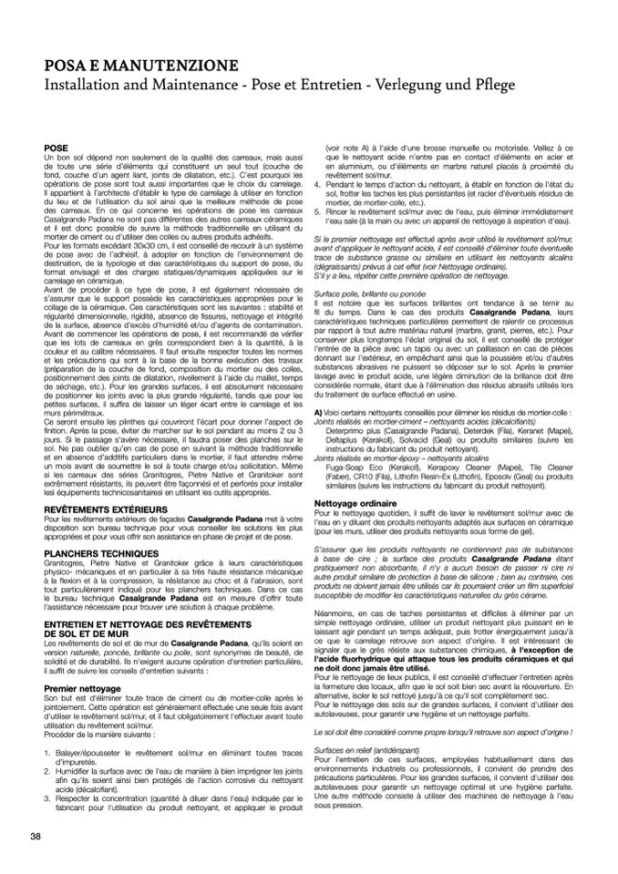 à base de cire ; la surface des produits Casalgrande Padana étant