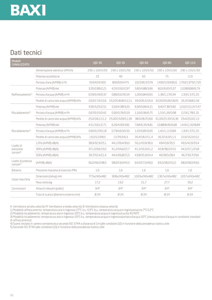 à riscaldamento: temperatura aria in ingresso 20°C b.s., temperatura acqua in ingresso/portata d’acqua 50°C (stessa portata d’acqua in condizioni standard