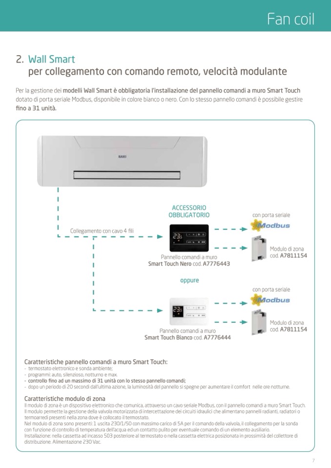 Il modulo di zona è un dispositivo elettronico che comunica, attraverso un cavo seriale Modbus, con il pannello comandi a muro Smart Touch.