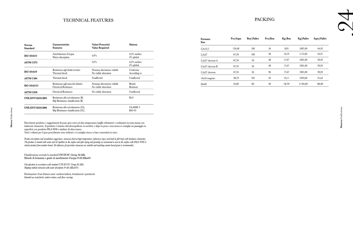 indurenti (chamotte). Il prodotto é trattato idrooleorepellente in suerficie e dopo la posa e stuccatura si consiglia un passaggio in
