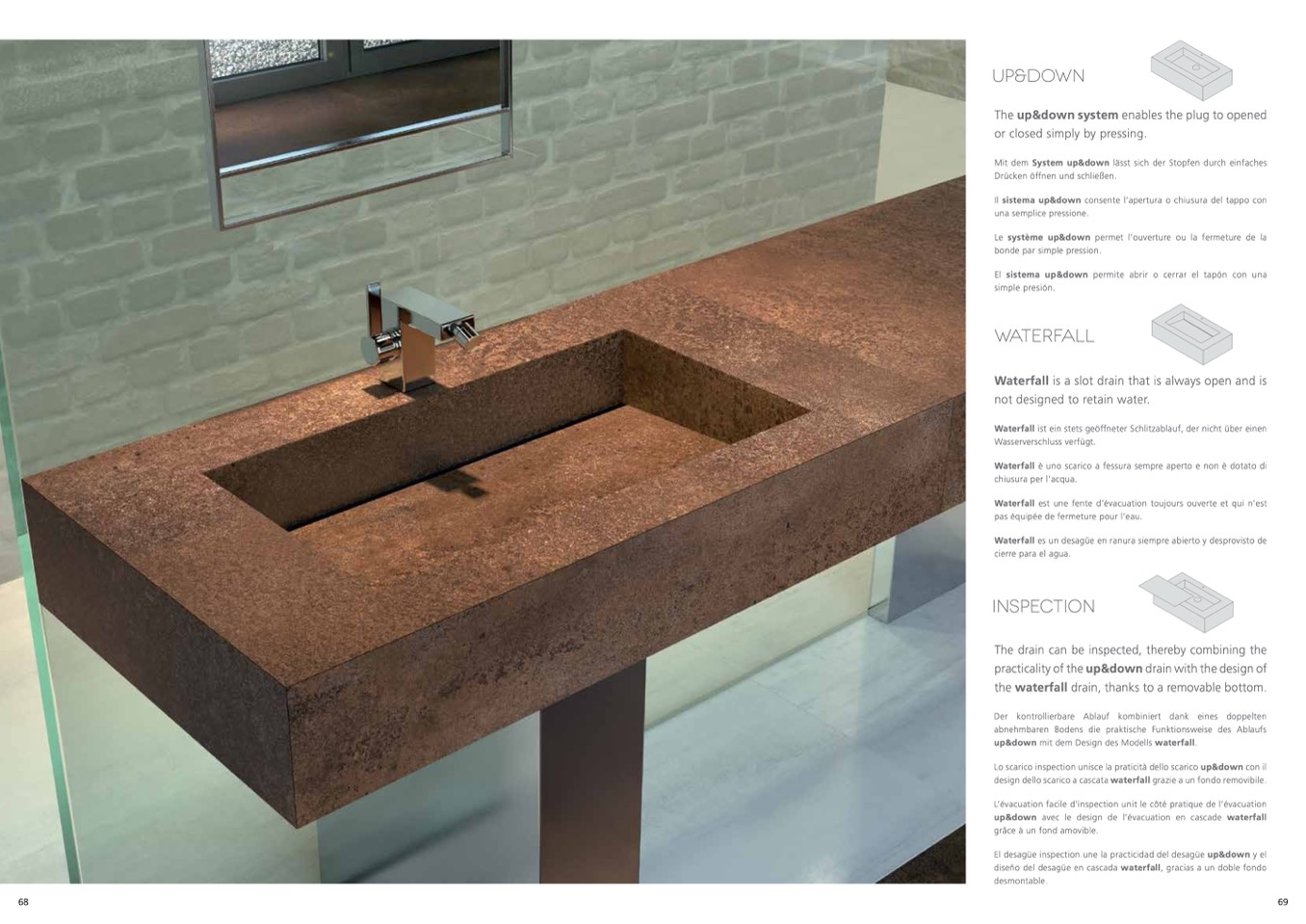up&down avec le design de l’évacuation en cascade waterfall