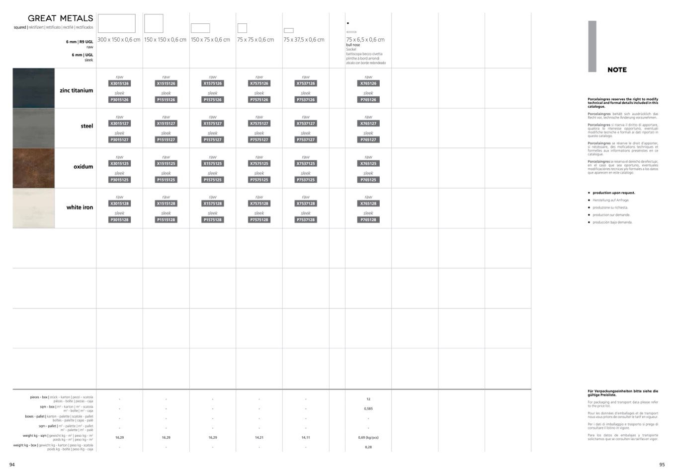 300x150x0,6cm 150x150x0,6cm 150x75x0,6cm 75x75x0,6cm