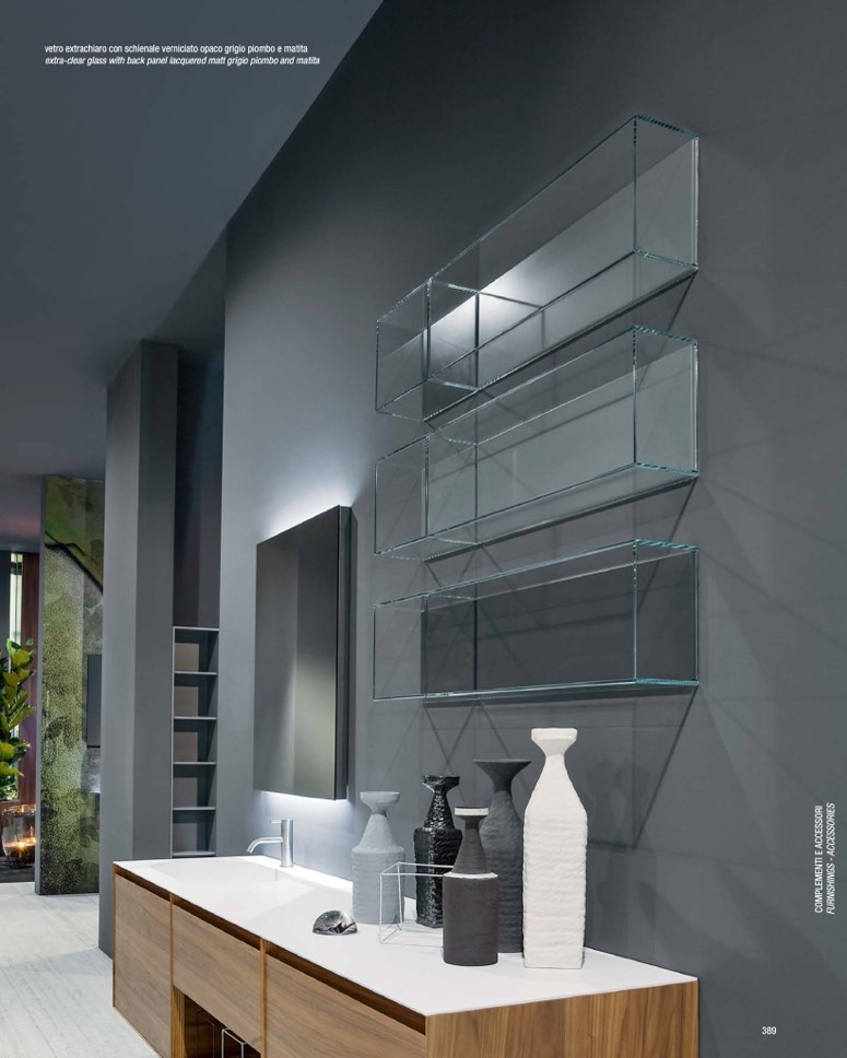 extra-clear glass with back panel lacquered matt grigio piombo and matita