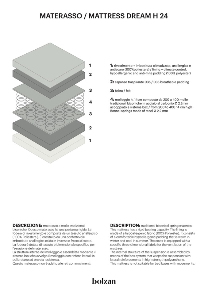 biconiche. Questo materasso ha una portanza rigida. La