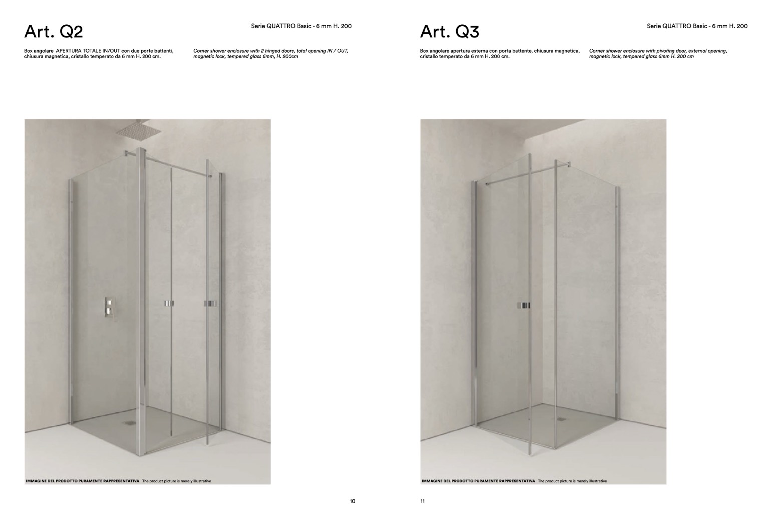 chiusura magnetica, cristallo temperato da 6 mm H. 200 cm.