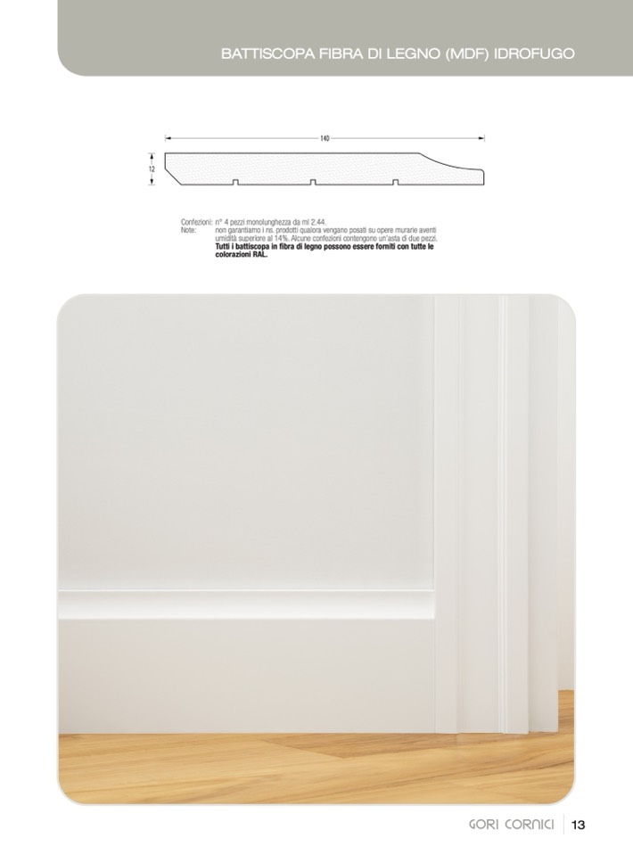 Tutti i battiscopa in fibra di legno possono essere forniti con tutte le