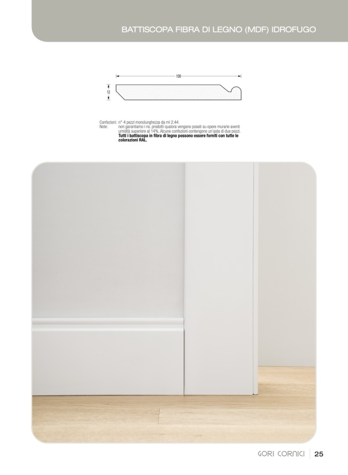 Tutti i battiscopa in fibra di legno possono essere forniti con tutte le