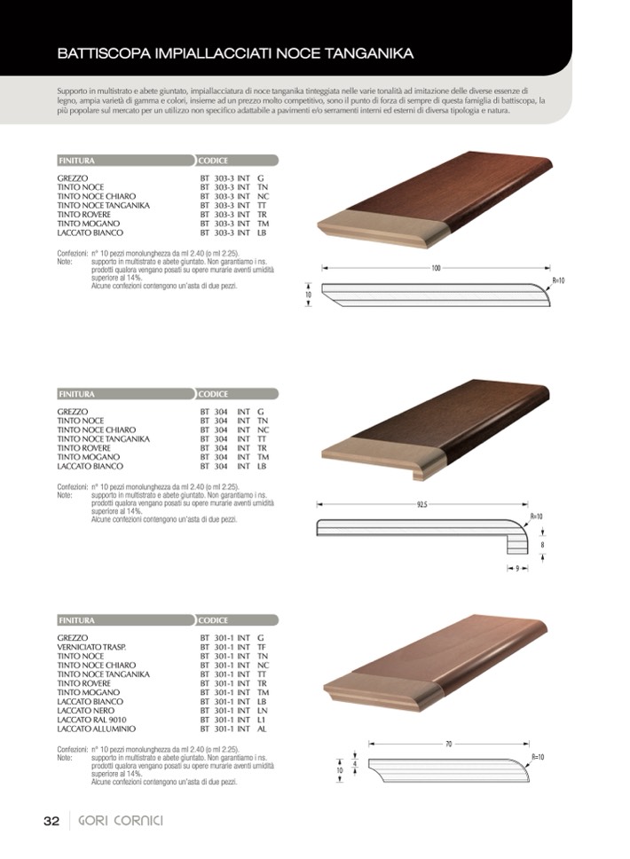legno, ampia varietà di gamma e colori, insieme ad un prezzo molto competitivo, sono il punto di forza di sempre di questa famiglia di battiscopa, la