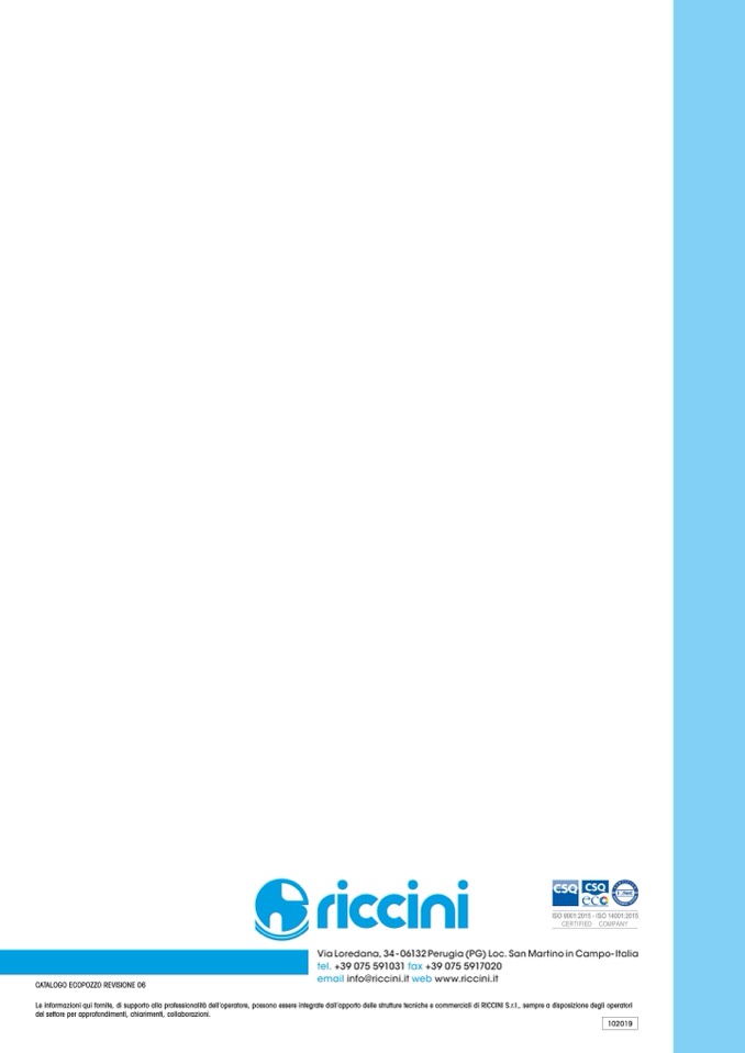 Le informazioni qui fornite, di supporto alla professionalità dell’operatore, possono essere integrate dall’apporto delle strutture tecniche e commerciali di RICCINI S.r.l., sempre a disposizione degli operatori
