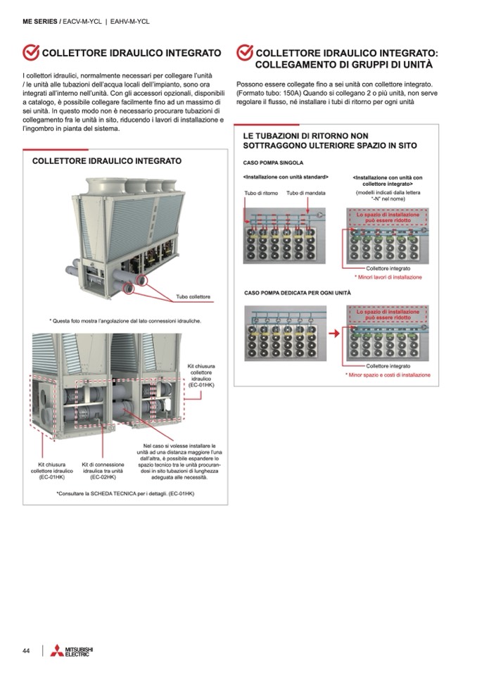 I collettori idraulici, normalmente necessari per collegare l’unità