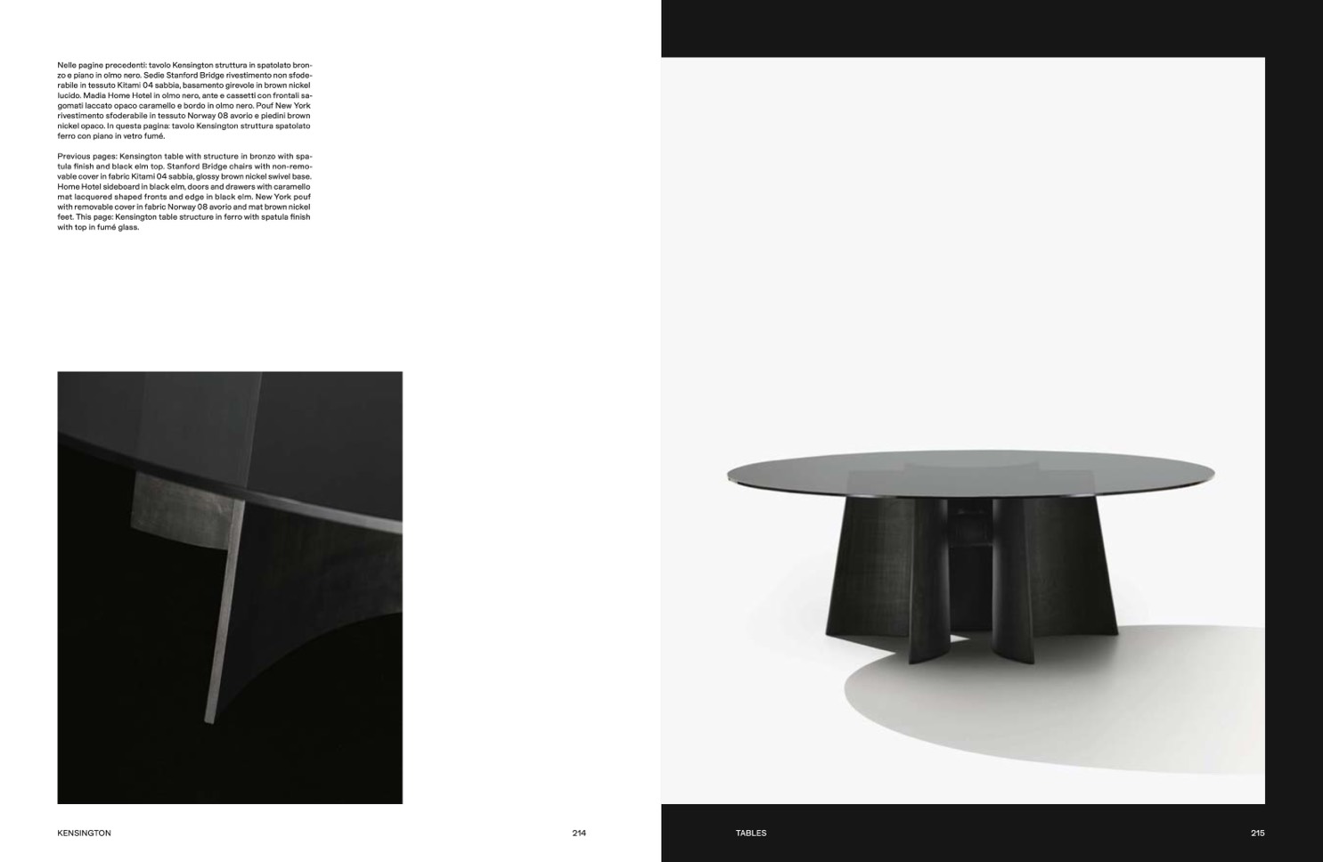 feet. This page: Kensington table structure in ferro with spatula finish