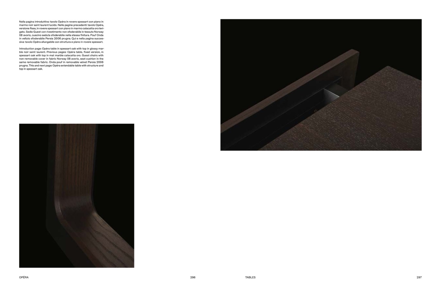 Introduction page: Opéra table in spessart oak with top in glossy mar-