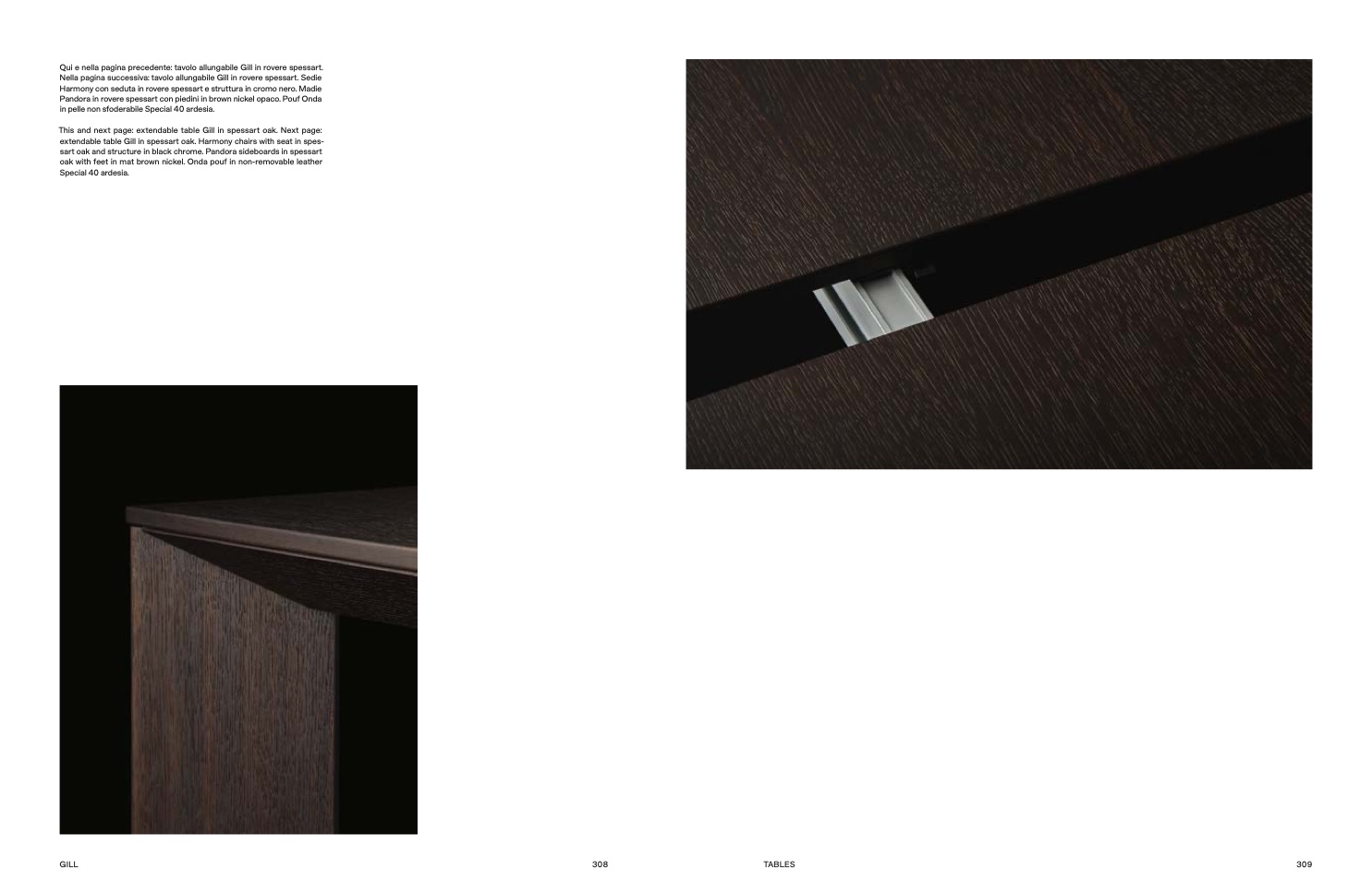 Qui e nella pagina precedente: tavolo allungabile Gill in rovere spessart.