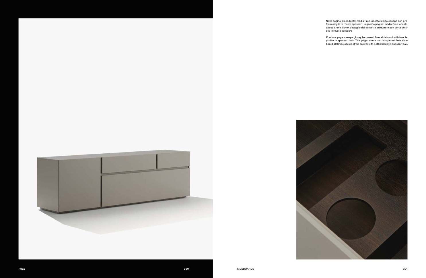 Nella pagina precedente: madia Free laccato lucido canapa con pro-