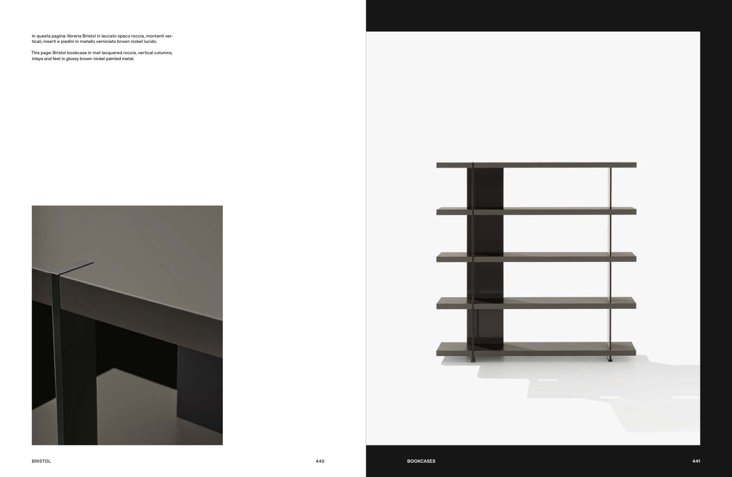This page: Bristol bookcase in mat lacquered roccia, vertical columns,