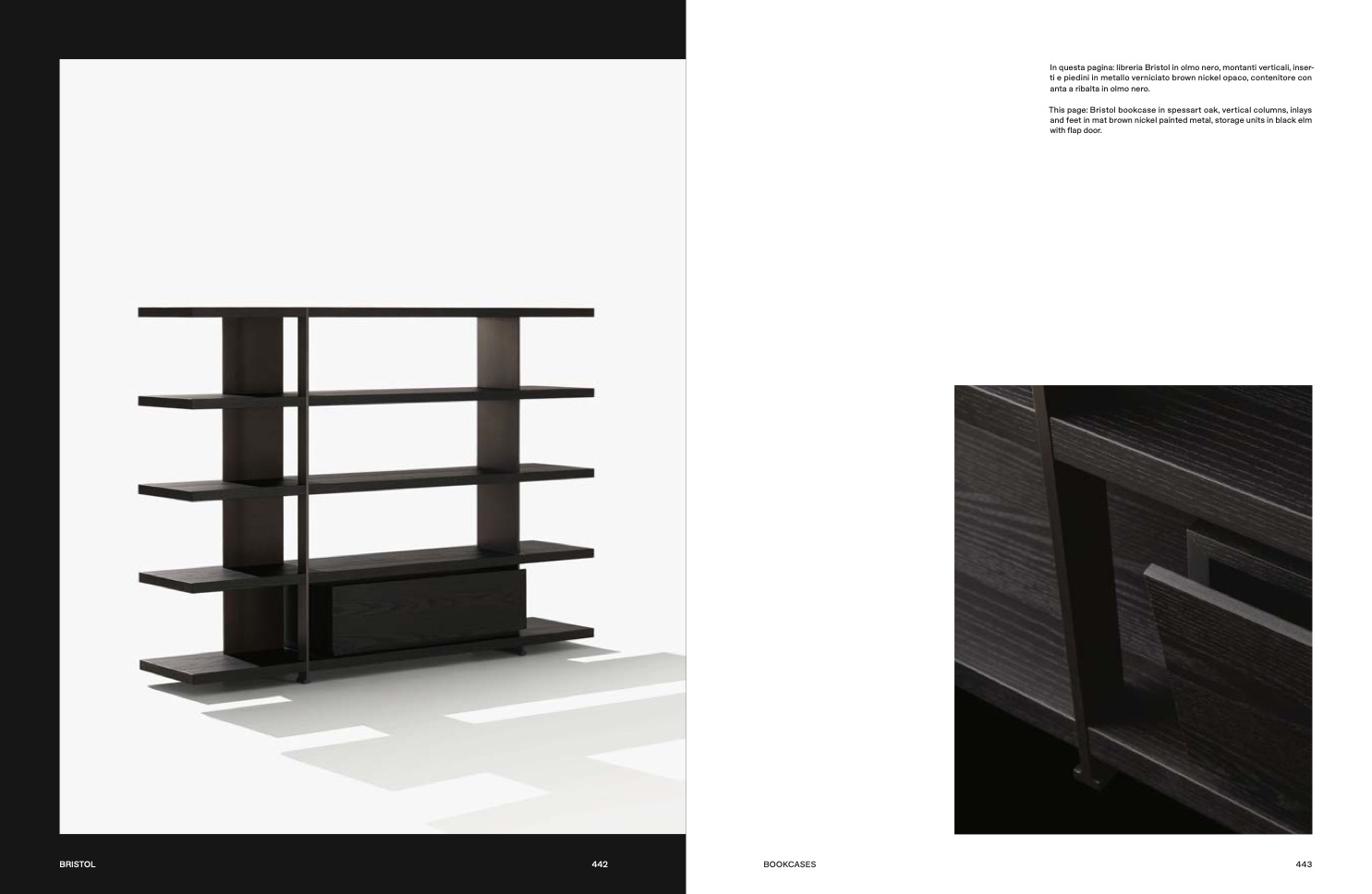In questa pagina: libreria Bristol in olmo nero, montanti verticali, inser-
