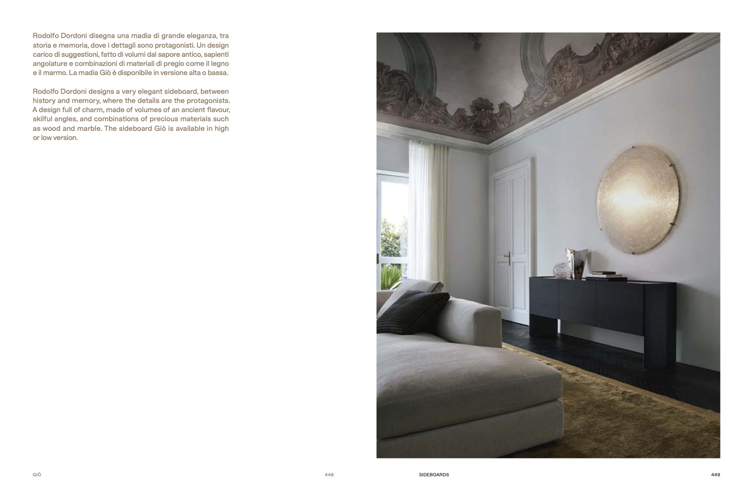 as wood and marble. The sideboard Giò is available in high